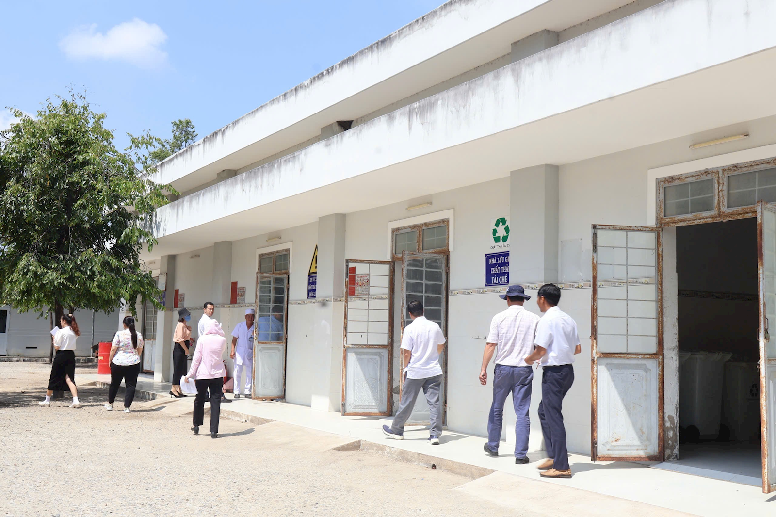 Sau phần báo cáo, Đoàn công tác đã tiến hành kiểm tra thực tế tại các khu vực trọng điểm như: khu lưu giữ chất thải y tế nguy hại; khu xử lý nước thải; nhà chứa rác thải sinh hoạt; khu vực phát sinh khí thải.