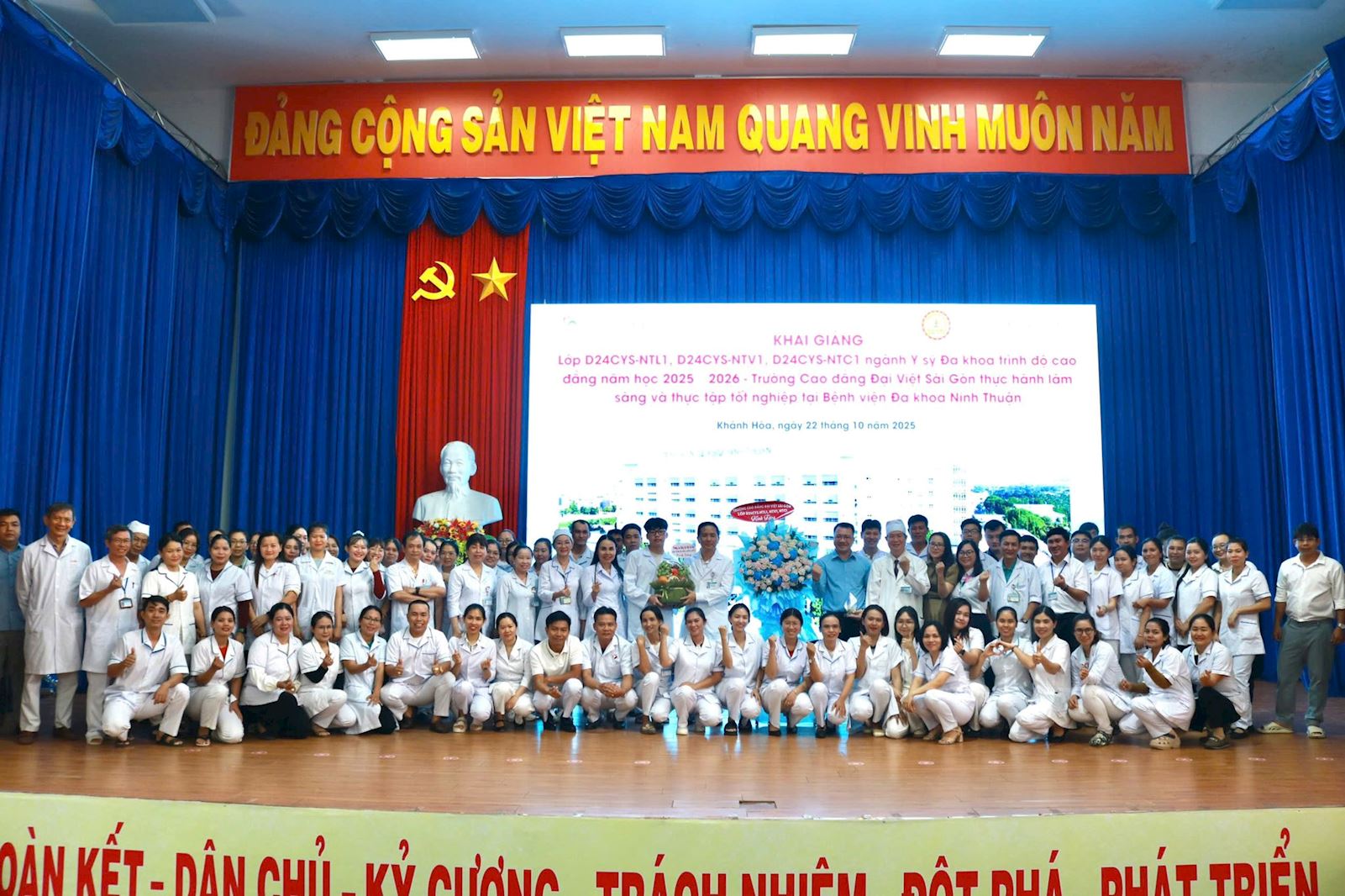Sáng ngày 22/10/2025, Bệnh viện Đa khoa Ninh Thuận tổ chức Lễ khai giảng khóa thực hành lâm sàng và thực tập tốt nghiệp dành cho sinh viên ngành Y sỹ đa khoa của Trường Cao đẳng Đại Việt Sài Gòn, năm học 2025 – 2026.