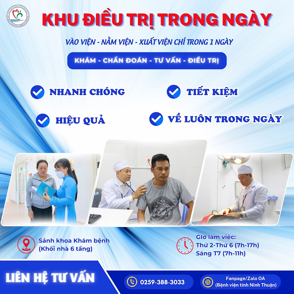Với tiêu chí “Nhanh chóng – An toàn – Hiệu quả”, Khu Điều trị trong ngày mang lại nhiều tiện lợi cho bệnh nhân như: