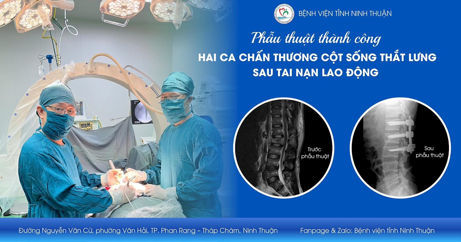 Các bác sĩ Khoa Ngoại Thần kinh – Bệnh viện tỉnh Ninh Thuận vừa phẫu thuật thành công hai trường hợp chấn thương cột sống thắt lưng nghiêm trọng do tai nạn lao động. Nhờ được can thiệp kịp thời và đúng kỹ thuật, cả hai bệnh nhân đã phục hồi vận động chỉ sau vài ngày hậu phẫu.