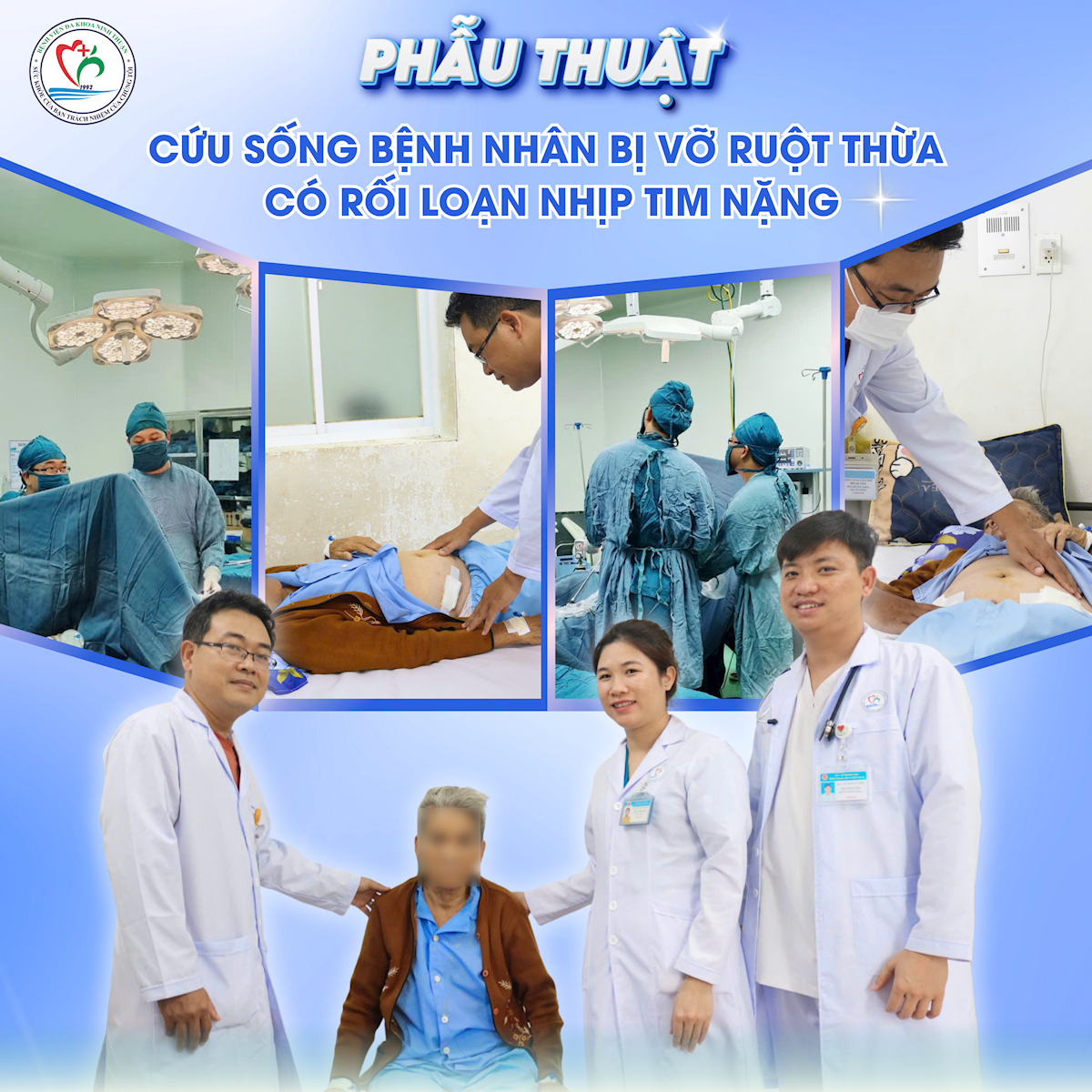 Chia sẻ về ca bệnh, ThBSCKII Lê Huy Thạch – Giám đốc Bệnh viện Đa khoa Ninh Thuận cho biết: “Đây là một ca bệnh rất phức tạp vì người bệnh tuổi cao, vừa bị viêm phúc mạc nặng, vừa có rối loạn nhịp tim nguy hiểm. Nếu không xử trí kịp thời bằng máy tạo nhịp tim và phẫu thuật cấp cứu, nguy cơ tử vong là rất cao. Thành công này là kết quả của sự phối hợp nhịp nhàng giữa nhiều chuyên khoa tại bệnh viện.”