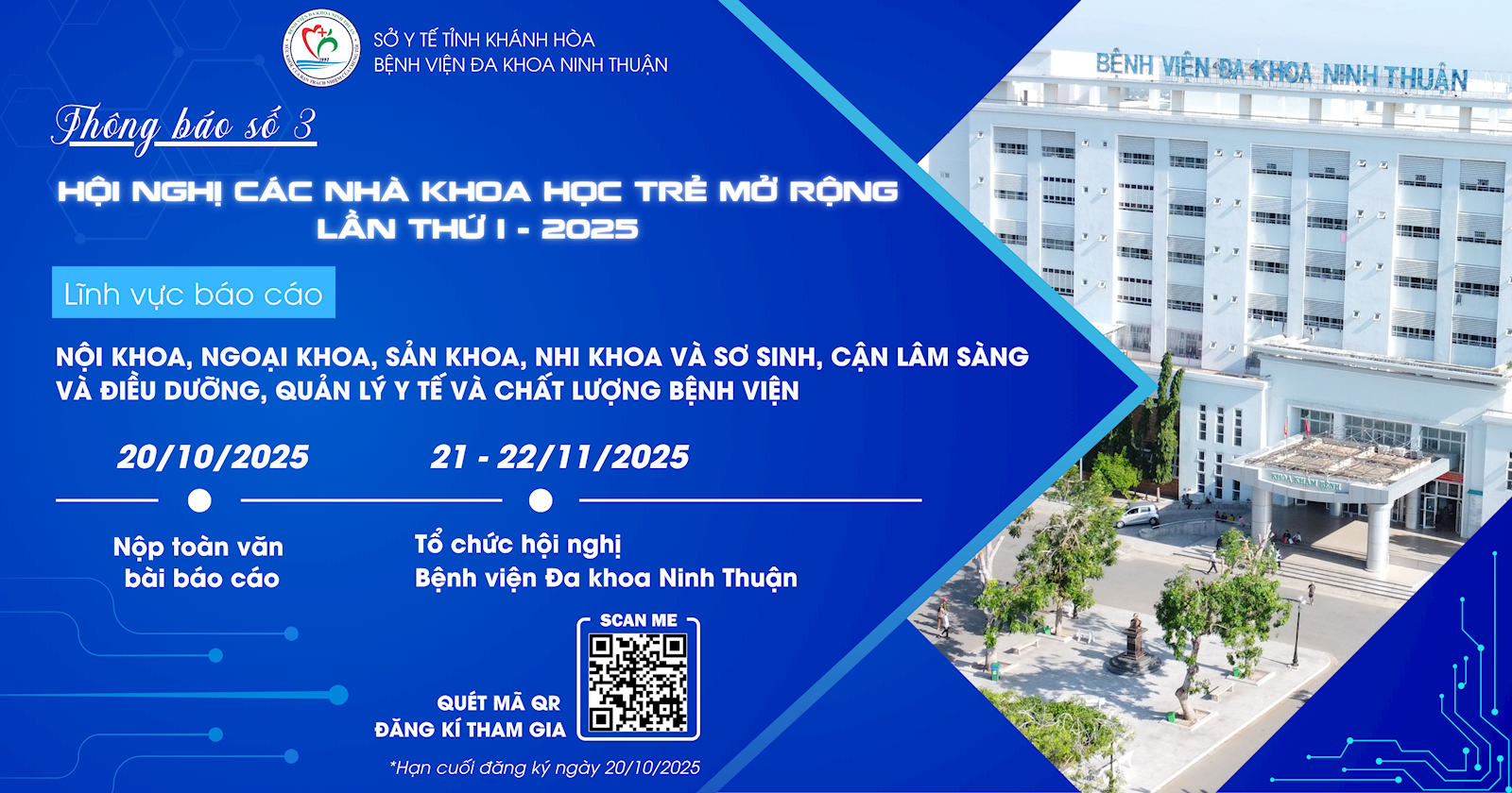 THÔNG BÁO SỐ 03: Về việc tổ chức Hội nghị các nhà khoa học trẻ mở rộng lần thứ nhất năm 2025 tại Bệnh viện đa khoa Ninh Thuận