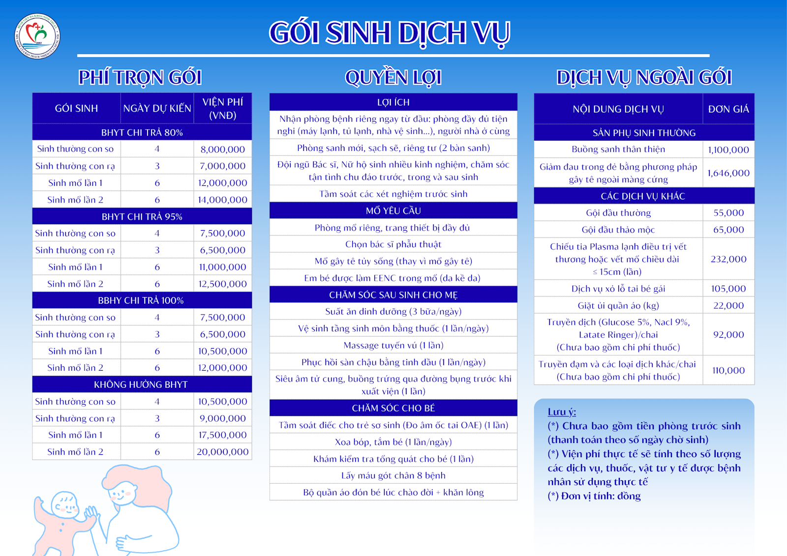 Bệnh viện Đa khoa Ninh Thuận kính gửi Quý khách hàng thông tin về gói sinh dịch vụ.
